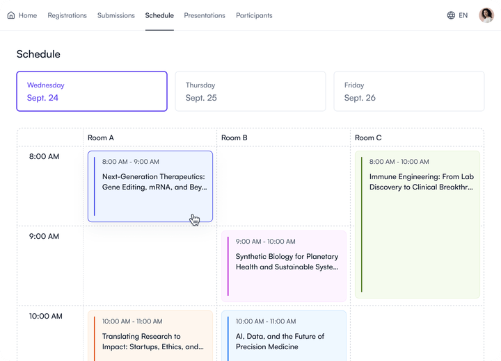 Obtenez les outils, le soutien et la simplicité dont vous avez besoin pour organiser un événement scientifique de qualité, sans le stress.
