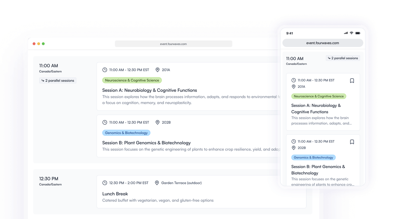 Contrairement aux plateformes génériques, Fourwaves est pensé pour les conférences avec des affiches et du réseautage.